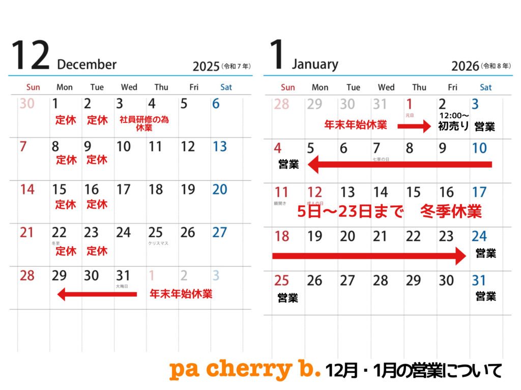 12/3(水)4(木)は社員研修による臨時休業と、冬季の営業日についてのお知らせ